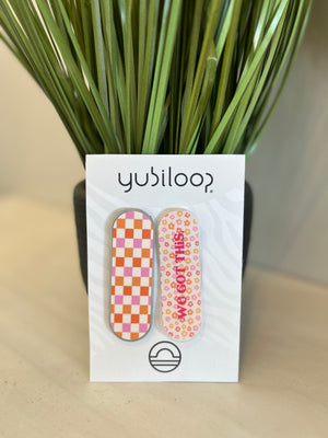 Yubiloop features a universal finger loop and collapsible stand so you can get a better grip on your phone, prevent drops, deter theft, take better selfies, multitask, and prop up your phone freestanding to watch or record photos and videos anywhere with ease. Our loops are easily interchangeable for individual personalization and daily style changes!